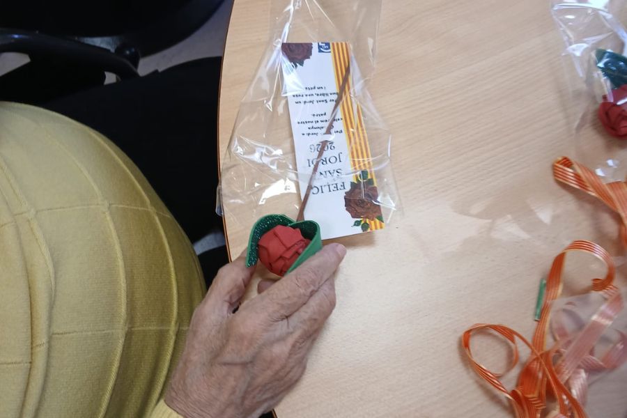 Durant les setmanes prèvies, els residents van participar activament en l’elaboració de les roses que posteriorment es van posar a la venda. Aquesta activitat no només va fomentar la creativitat, sinó també el treball en equip i la il·lusió per formar part d’una celebració tan significativa.